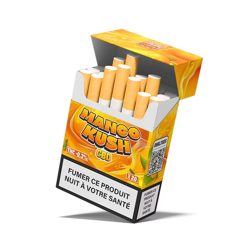 Les cigarettes CBD Mango Kush CocoriBud sont préparées uniquement avec des fleurs de chanvre pures de la variété Mango Kush, sans aucun additif ni conservateur. Ces fleurs CBD issues d'une culture indoor sans pesticides sont reconnues pour leur qualité premium. Elles sont roulées dans un papier neutre qui assure une bonne qualité de combustion.