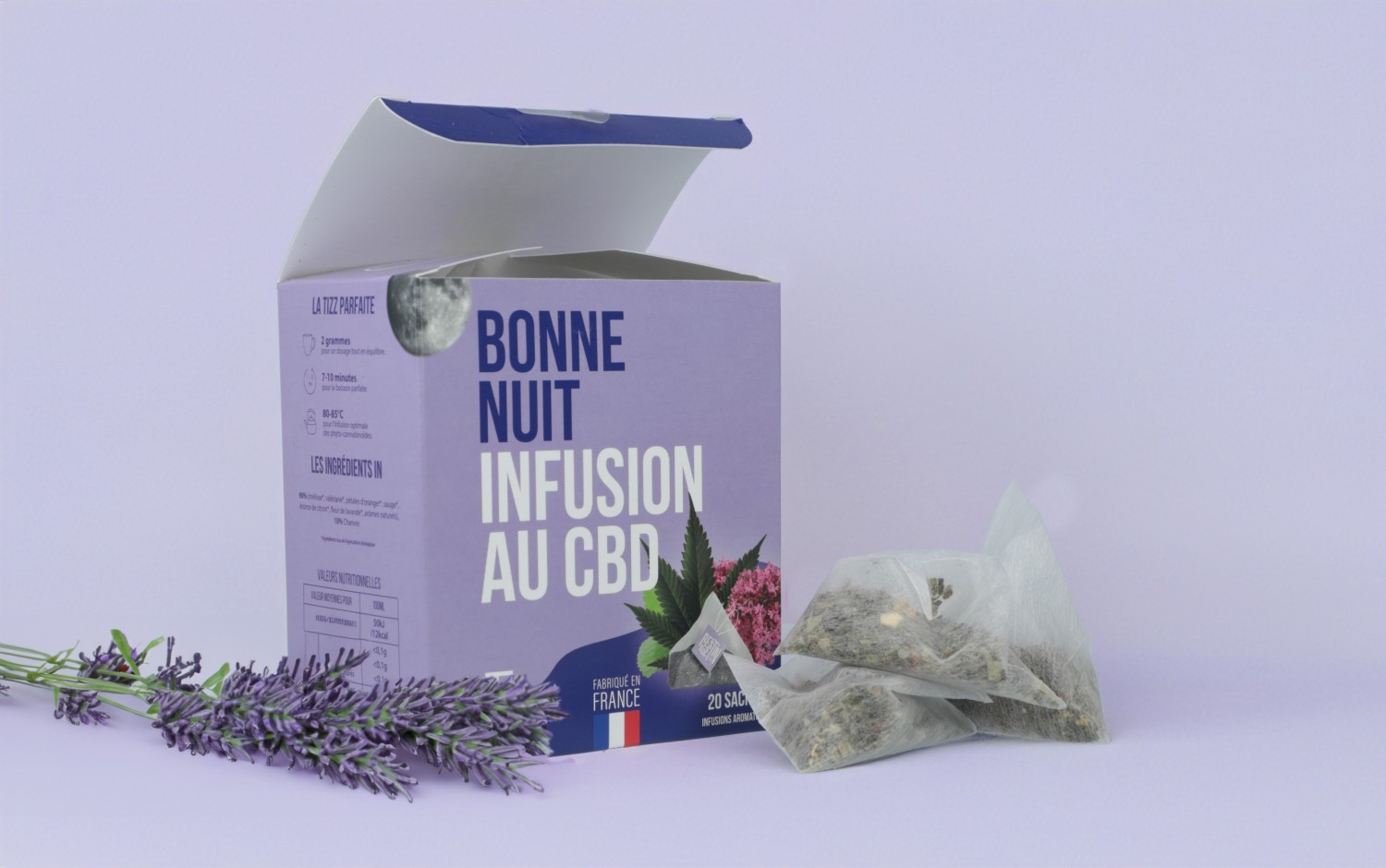 Cette infusion de CBD a spécialement été pensée pour vous offrir une pause ressourçante avant d'aller vous coucher. Vendue en infusettes contenant chacune 2 grammes de plantes, elle est prête à l'emploi et offre un dosage parfaitement équilibré.